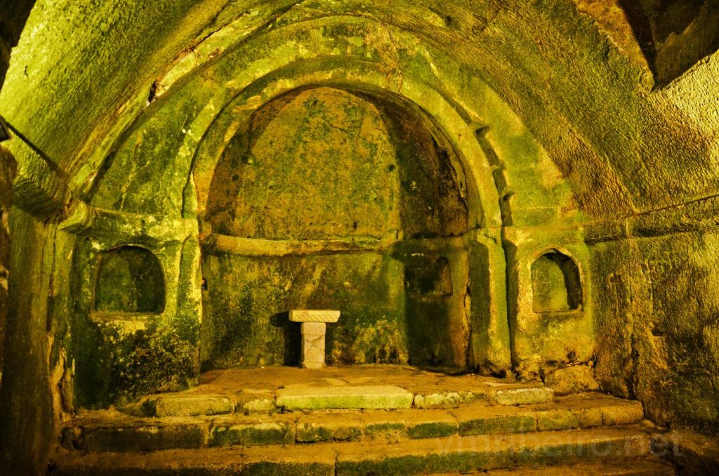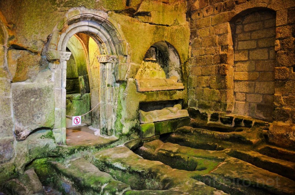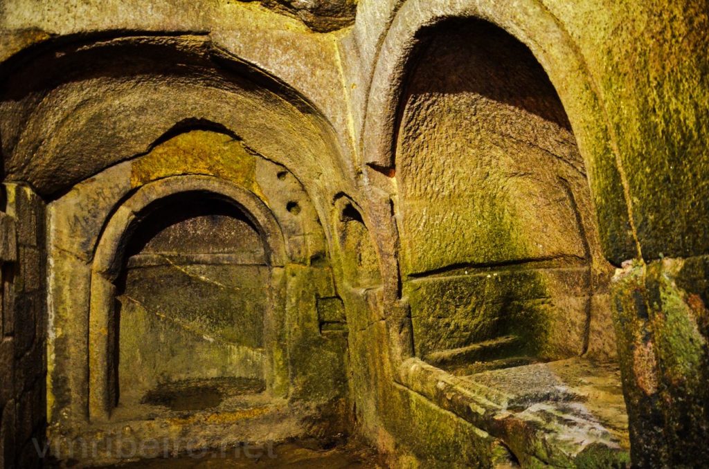 A igreja rupestre, abraçada pelo monte Barbeirón, convida a um mergulho sensorial. A luz, filtrada por fendas ancestrais, dança sobre as abóbadas de meio canhão imitadas na rocha viva, enquanto túmulos antropomórficos, alinhados como vagares de eternidade, sussurram histórias de homens que buscaram a redenção no silêncio. A água corre por canais escavados, talvez ecos de cultos a fontes milagrosas, tecendo um véu de mistério.