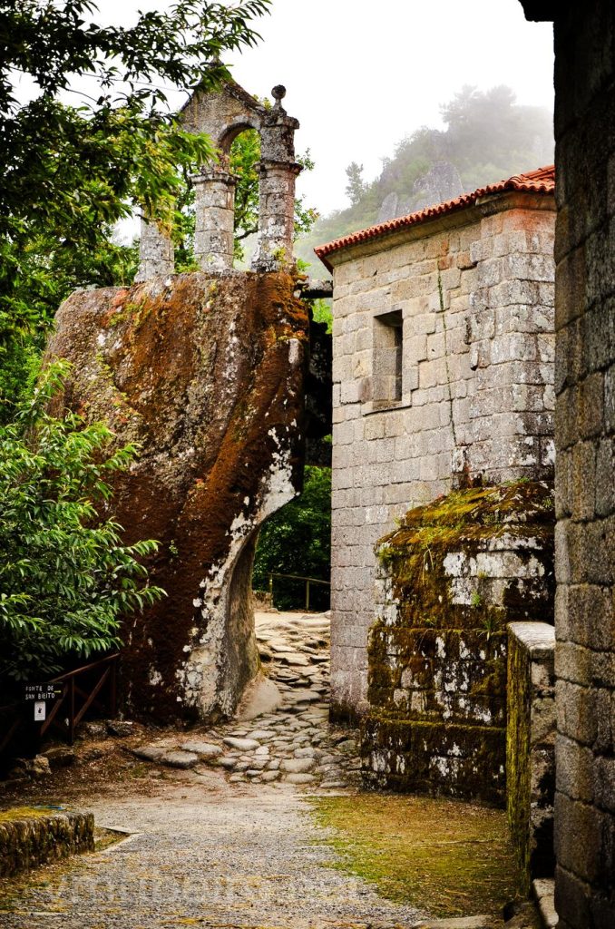 No exterior, a natureza e a obra humana fundem-se num abraço eterno. O campanário, sentinela imponente, não assenta sobre a igreja, mas emerge de um monólito natural, um farol de fé erguido sobre a paisagem. Os sinos ecoam pelos vales, chamando à contemplação, enquanto a escadaria, encravada nos veios do granito, nos convida a ascender à essência do sagrado.